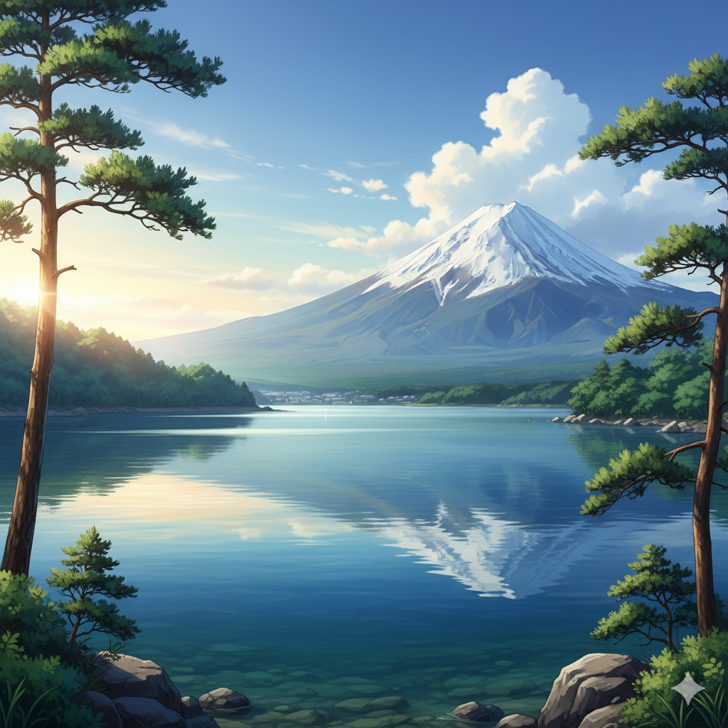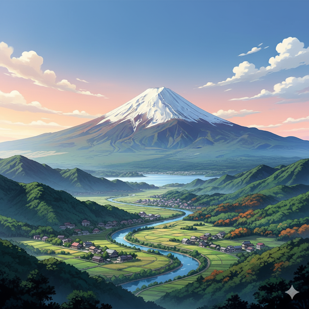 山梨県からみた富士山の全貌 アニメ風