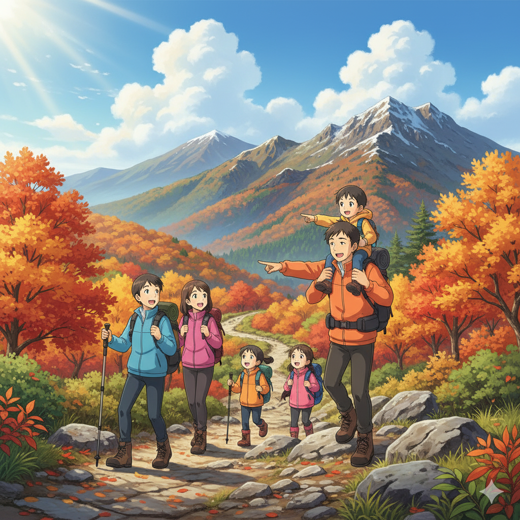 日本人6人家族が秋田駒ヶ岳を登山 アニメ風