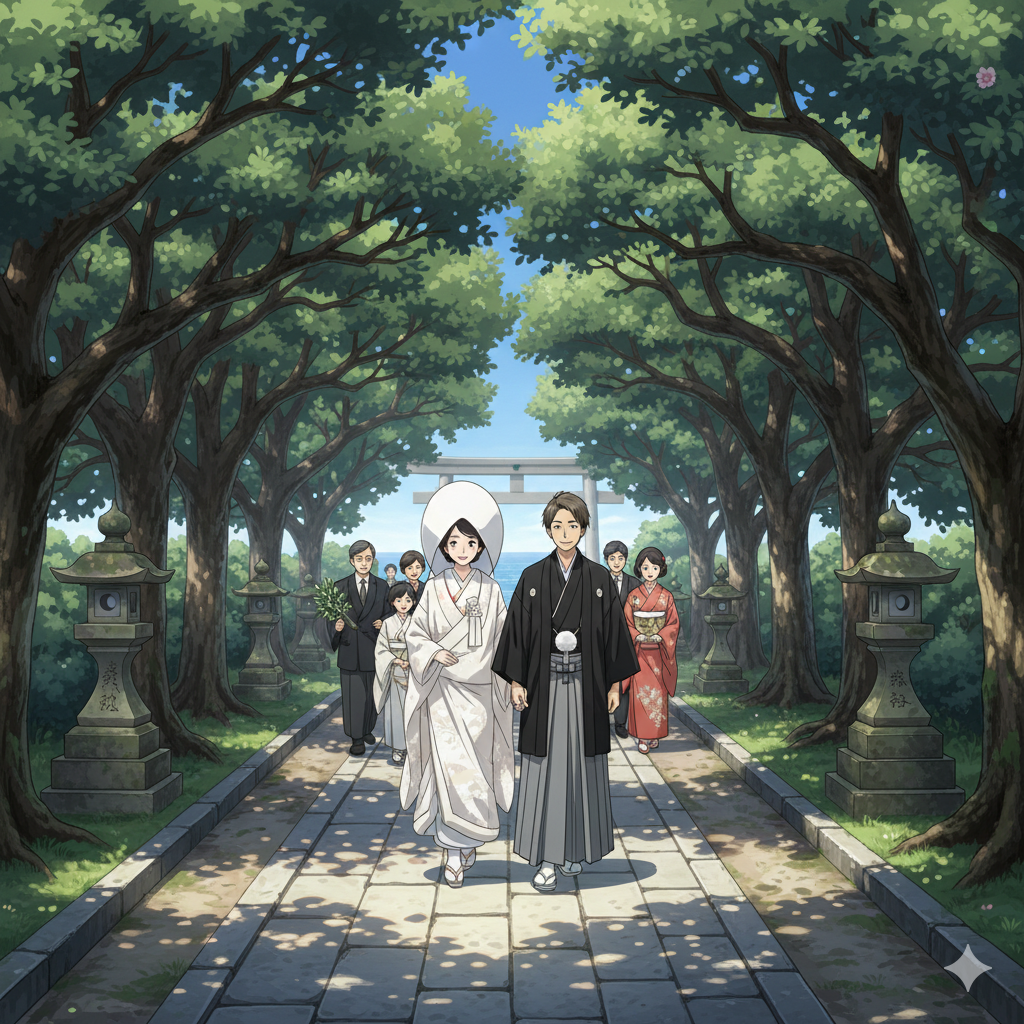 鳥居をくぐり、拝殿へと続く約300mの参道は、タブノキやヤブツバキなどの常緑樹が生い茂る**「酒列磯前神社の樹叢」**となっており、茨城県指定天然記念物に指定されています。木々がトンネルのように空を覆い、一年中変わらない神秘的で厳かな雰囲気に包まれています。